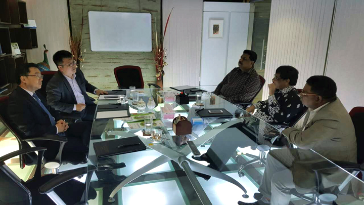 19日的開(kāi)幕式上,中國(guó)駐孟加拉國(guó)參贊李光軍及孟加拉中國(guó)商會(huì)林維強(qiáng)會(huì)長(zhǎng)等致辭并蒞臨三新集團(tuán)展廳,與洪長(zhǎng)禧總經(jīng)理親切會(huì)談。