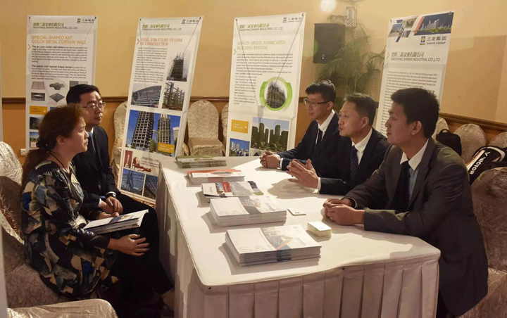 在推介會(huì)上,來(lái)自中孟的近70位企業(yè)代表就孟加拉國(guó)市場(chǎng)拓展、企業(yè)產(chǎn)品和項(xiàng)目合作進(jìn)行了面對(duì)面的交流對(duì)接,涉及基建、能源、電力等領(lǐng)域。會(huì)議期間,三新集團(tuán)展位受到廣泛關(guān)注。獨(dú)具特色的公共建筑、民用建筑及工業(yè)建筑產(chǎn)品吸引了眾多孟加拉國(guó)客戶(hù)及廠商,并進(jìn)行了咨詢(xún)及多場(chǎng)洽談會(huì)晤,簽訂了多項(xiàng)合作及銷(xiāo)售協(xié)議。同時(shí),公司還與中國(guó)電建、中國(guó)能建、中國(guó)石油、中國(guó)東北電力第三工程有限公司、中成進(jìn)出口股份有限公司等國(guó)內(nèi)知名廠商進(jìn)行了合作洽談,強(qiáng)強(qiáng)聯(lián)合,共同助力開(kāi)拓孟加拉市場(chǎng)。