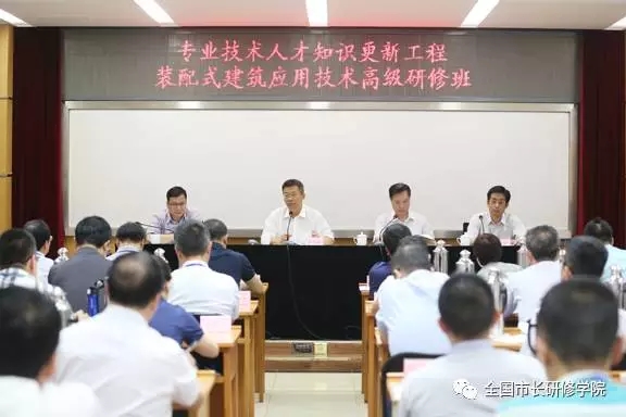 815~19日,由住房城鄉建設部和人力資源社會保障部聯合舉辦,全國市長研修學院(住房和城鄉建設部干部學院)承辦的裝配式建筑應用技術高級研修班在市長之家賓館開班。來自全國各省、區、市住房城鄉建設系統的專業技術人員共68人參加學習。本期研修班內容圍繞當前部中心工作,配備了裝配式建筑領域高水平、權威師資,精心設計課程,其中有該領域的知名專家和大師。學院逄宗展副院長、住房城鄉建設部人事司干部教育處何志方處長、建筑節能與科技司裝配式建筑與墻材革新處何任飛處長、學院專業技術人員繼續教育培訓部王軍主任參加開班式,并作了培訓導學和開班講話。本次高級研修班是落實中央城市工作會議、國務院關于發展裝配式建筑等文件精神,提升高端專業技術人才科技創新能力的有力抓手,對于加強人才隊伍建設、推進科技進步和科技雙創以及推動我國各地裝配式建筑發展具有十分重意義。