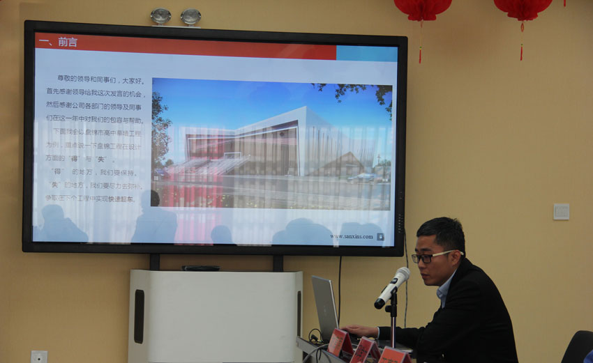 首先,全體員工共同宣讀公司誓詞,一起重溫了三新精神和核心價值觀:我們是三新人,以科技興企、產(chǎn)業(yè)報國為己任,發(fā)揚“求實、協(xié)作、勤儉、創(chuàng)新”的企業(yè)精神,志創(chuàng)國內(nèi)一流建筑科技企業(yè),三新的事業(yè)是我們大家的事業(yè),我們?nèi)σ愿埃啦谎詳。非笞吭剑删妥晕摇:榱琳R,鏗鏘有力的聲音回蕩在公司禮堂,我們的自豪感和責(zé)任感油然而生。