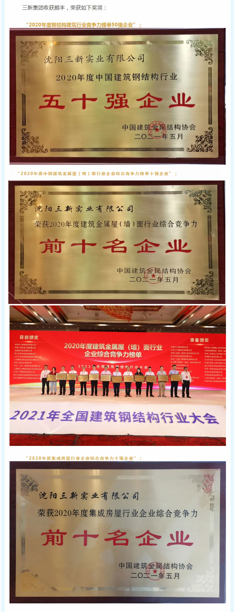 綠色引領,再創輝煌——三新集團參加“2021年全國建筑鋼結構行業大會”載譽歸來