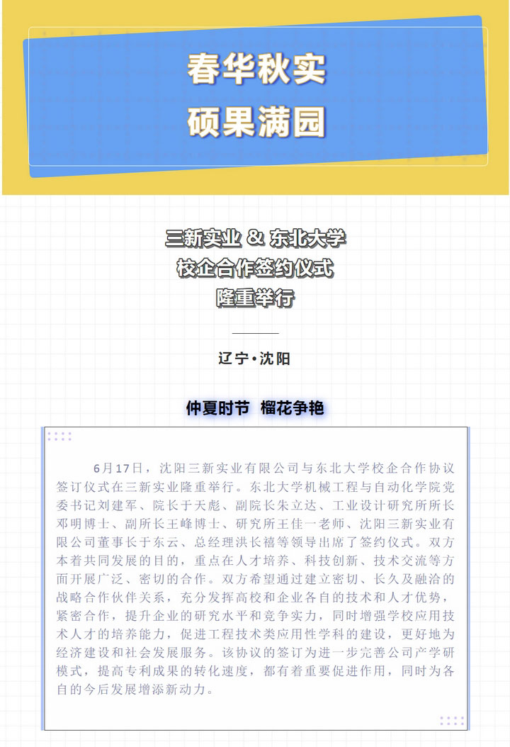 春華秋實,碩果滿園——三新實業與東北大學簽訂校企合作協議