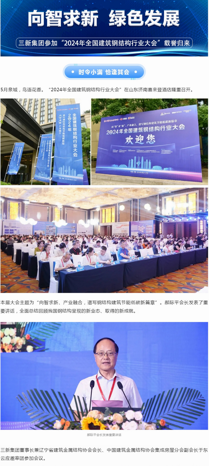 公司會以此次盛會為契機,緊跟國際技術前沿,積極挖掘鋼結構建筑在碳排放方面的潛力和優勢,構筑和完善"三新綠色建筑體系",真正做到綠色建筑,智能制造。同時深化實施公司創新戰略,進一步加快公司新產品的研發和成果轉化進程,全力助力遼寧省及國家現代建筑產業化升級及綠色發展的目標早日實現。
