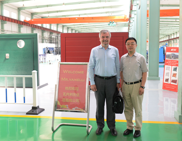 2015年7月10日,應公司邀請,世界電梯領跑者意大利沃迪克集團公司高管瓦內利先生訪問我公司。瓦內利先生在公司總經理洪長禧先生的陪同下考察了公司柔性金屬板材生產車間,客人對公司先進的生產線及其生產管理由衷的滿意。之后于東云董事長與瓦內利先生進行了親切友好的會談。