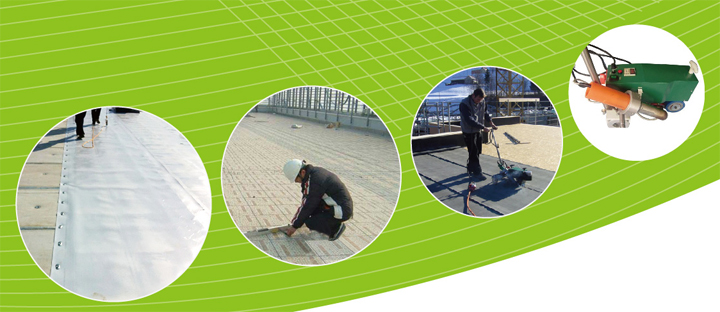 為確保卷材防水層在屋面的整體性,關鍵之一是搭接處理,通過熱焊接使相鄰卷材搭接形成高于卷材強度的粘結層,形成卷材整體的連續密封防水層。 TPO卷材與屋面的固定方式: