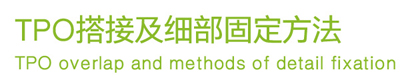 ①、大面采用空鋪加機械固定的方式。即TPO卷材空鋪于基層,在相鄰的下層卷材搭接區,用機械緊固螺釘和固定墊片與基層固定,上層卷材與下層卷材的搭接采用熱風焊熔接,使卷材連接成一個整體密封的防水層。